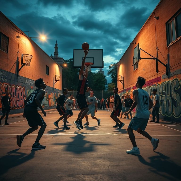 灯光下,球鞋与篮球的摩擦声成了最真实的节拍,正如城市在夜晚继续跳动的心跳一样。